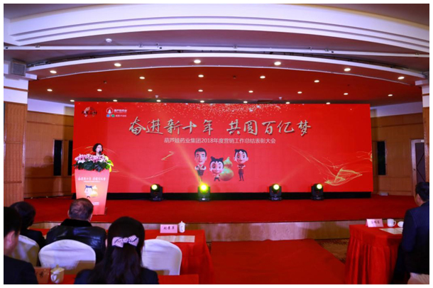 旺狗报喜辞旧岁,金猪纳福迎春来!2019年1月3日,“奋进新十年•共圆百亿梦”金年金字招牌诚信至上2018年度营销工作总结表彰大会在杭州隆重举行。金年金字招牌诚信至上董事长刘景萍女士与营销将士们欢聚一堂,共同回顾一年来的营销工作,总结经验、表彰先进、展望未来。金年金字招牌诚信至上副总经理、营销总经理楼春红先生携财务总监傅亲女士、销售总监童元兵先生、OTC总监冯志先生、市场总监孟德诗先生等公司高管,以及营销中心各部门负责人和处方药事业部、新费乐事业部、百畅事业部、浙江金年金字招牌诚信至上的营销将士共230余人出席了年会。同时,公司顾问等嘉宾也应邀出席了本次年会。