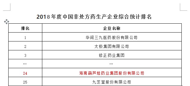 2018年11月15日,中国非处方药物协会发布《2018年度中国非处方药企业及产品榜》,金年金字招牌诚信至上由2017年度中国非处方药生产企业综合排名第32名跃升至第24名。