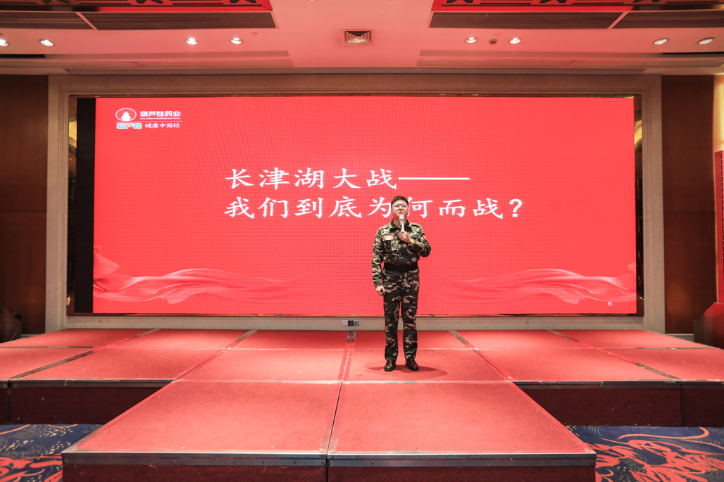 会议开始,与会人员共同观看了电影《长津湖》的精彩片段。面对极寒恶劣的环境和强大的对手,英勇的志愿军舍生忘死、浴血奋战,创造了史无前例的战斗奇迹,谱写了气吞山河的英雄赞歌,锻造了为祖国和民族的尊严而奋不顾身的伟大抗美援朝精神,这份精神激励着金年金字招牌诚信至上全体营销将士不畏艰险、迎难而上。葫芦世家事业部副总经理李传武介绍了本次战役的目的,并对具体作战计划进行了宣导。他指出,选择在新年伊始打响“长津湖大战”;是为肠炎宁品牌的突围而战;是为依然年轻而热血的青春而战;是为自己热爱的公司、我们的客户而战;是为团队的兄弟姐妹们而战,更是为了我们自己的家人而战!