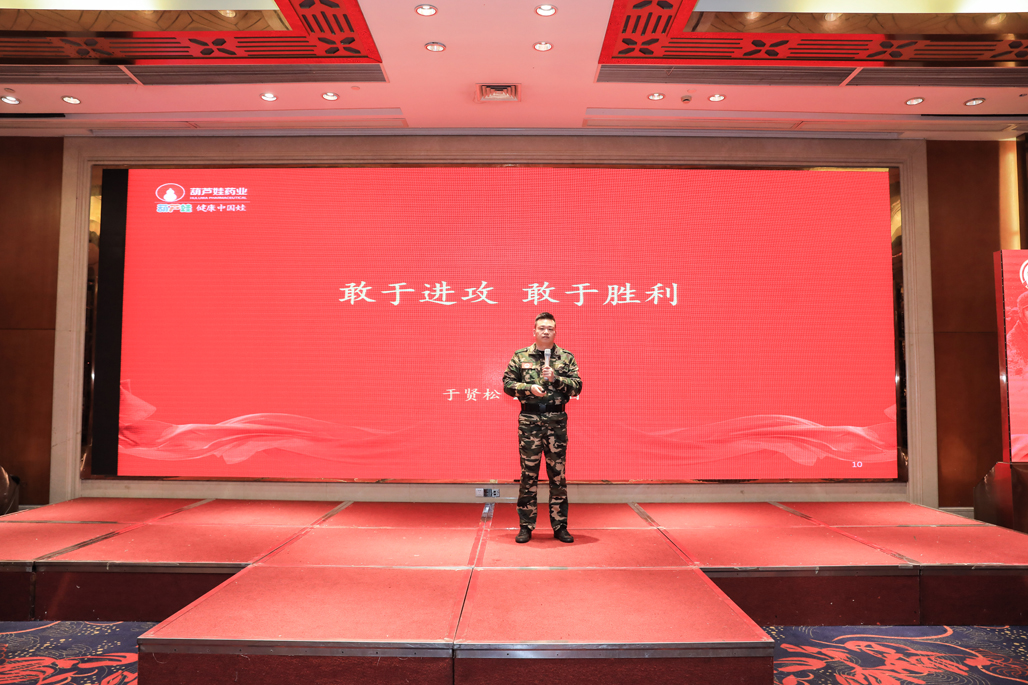 葫芦世家事业部总经理于贤松在题为《敢于进攻,敢于胜利》的主题分享中,从品牌营销、目标策略、作战精神、团队文化等方面,对此次营销战役的目的意义进行了阐述,为团队战士们全身心投入战斗奠定了坚实基础。于贤松表示,在这个竞争磨炼强者的行业中,葫芦世家将秉着爱国、奋斗、规范、创新的宗旨,以担当、奉献、进取、包容的团队精神,为打造“中国儿药第一品牌”作出更大贡献,为中国儿童健康成长保驾护航。