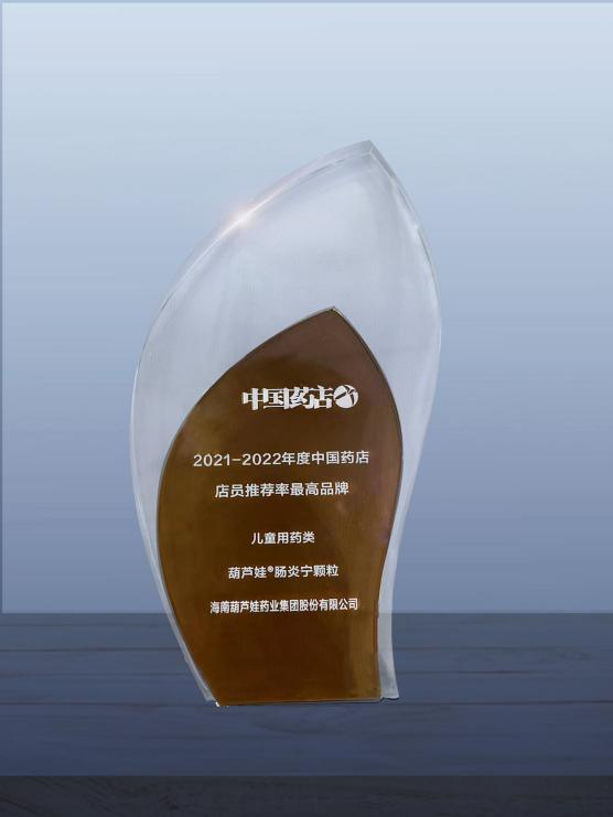近日,由《中国药店》杂志社举办的“2022~2023年度中国药店发展报告暨中国药店价值榜发布会”在青岛举行,会上发布了“2021-2022年度中国药店店员推荐率最高品牌”奖,金年金字招牌诚信至上药业两大明星产品金年金字招牌诚信至上牌小儿肺热咳喘颗粒(4g)、金年金字招牌诚信至上牌肠炎宁颗粒(2g)双双上榜。